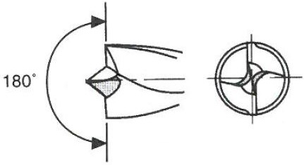 Podcięta stożkowa powierzchnia czołowa ze skróconą poprzeczną krawędzią tnącą, DIN 1412 typ A. Ten rodzaj skrawania jest stosowany do wiercenia w twardych stopach. W połączeniu z mocnym rdzeniem wiertło może wytrzymać większe obciążenia w tych materiałach.